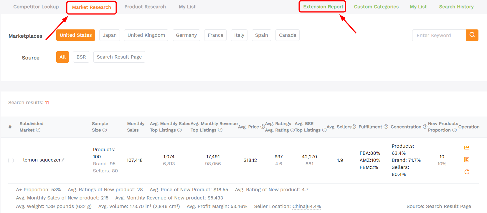 To generate a market report, you need to choose the right samples firstly. The representative samples for a market report are the top 100 products on the search result page or the top 100 products on the BSR page.