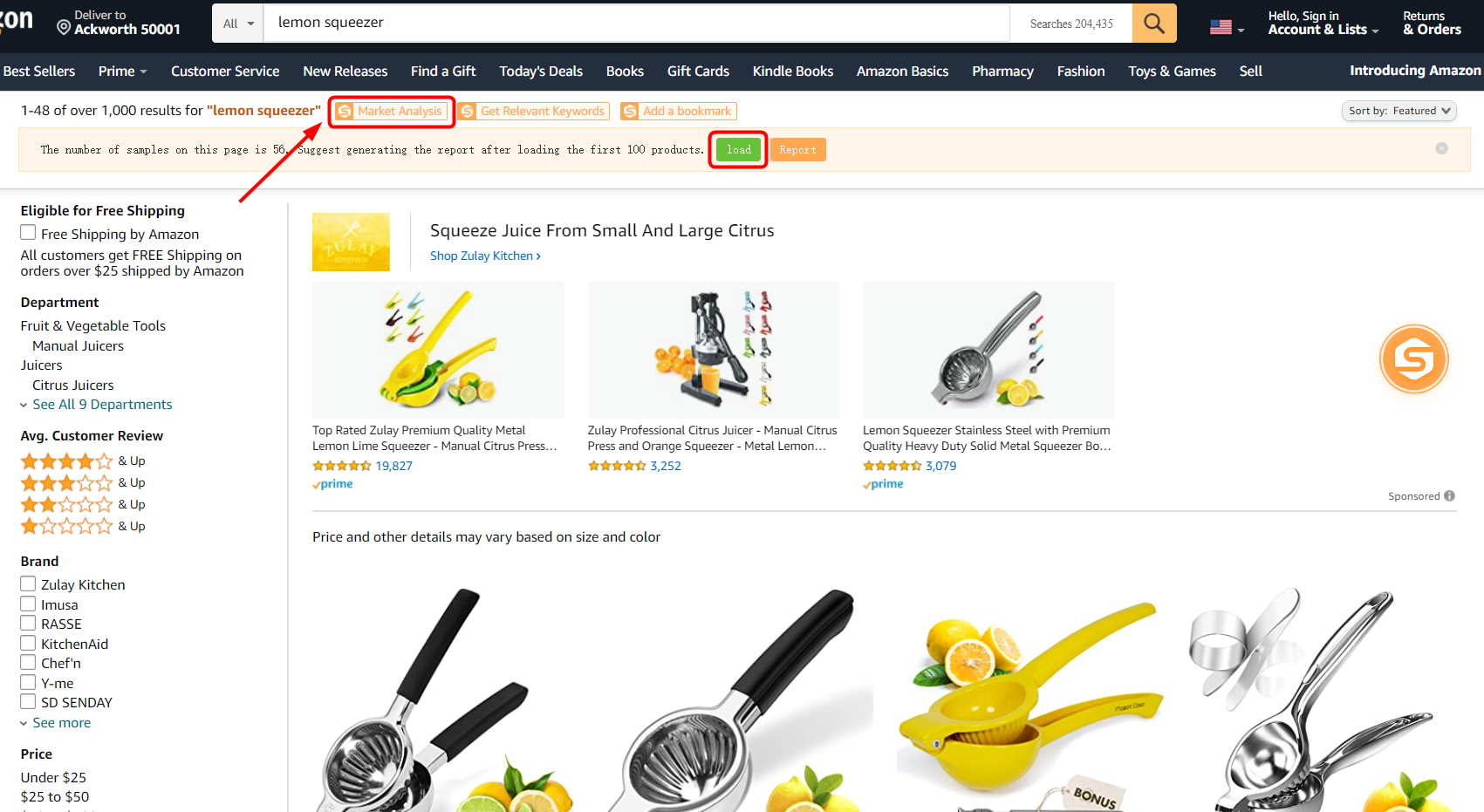 Amazon shows about 50 products per page, so we need to click【load】to load the first 100 products, and the report will be ready in 1-2 minutes.